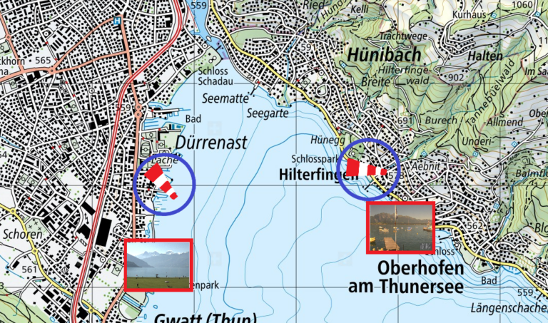 Der Vergleich zeigt, «THUNERSEE WIND & WETTER — DYNAMISCH & AKTIV» stellt das aktuelle Wetter und vor allem die Windsituation auf dem Thunersee auf einen Blick dar. Die Karte 2022 enthält nun genauere Angaben über Windrichtung und -stärke, Wind- und Wetterprognose.